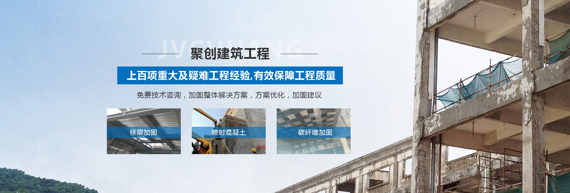 山西聚創(chuàng)建筑工程技術(shù)有限公司是一家涉足建筑工程改造加固、基礎(chǔ)加固、樓房糾偏、橋梁結(jié)構(gòu)加固補(bǔ)強(qiáng)、鋼結(jié)構(gòu)加固與安裝、靜力切割拆除、樓房增層、抗震加固、裝飾工程、工程檢測、設(shè)計、加固材料產(chǎn)品研發(fā)和新技術(shù)推廣或技術(shù)咨詢服務(wù)型加固企業(yè)等諸多領(lǐng)域。